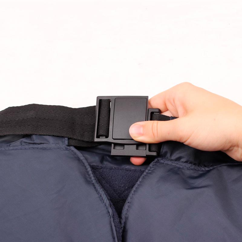 RainPro regnöverdrag är lämpligt att använda i rullstol och permobil i kallt och vått väder. Regnöverdraget är tillverkat i vattentät polyester och fodrat med varm och luddfri polarfleece på insidan. Det har en ficka framtill, och ett magnetiskt spänne som gör det enkelt att ta av och på – även med bara en hand.
