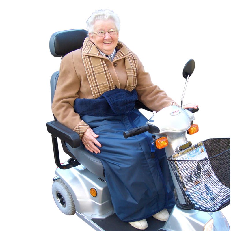 Varmt och vattentätt åktäcke med silkesmjukt, bekvämt foder på insidan. Åktäcket är öppet i botten och kan användas av personer som använder rullstol eller permobil.