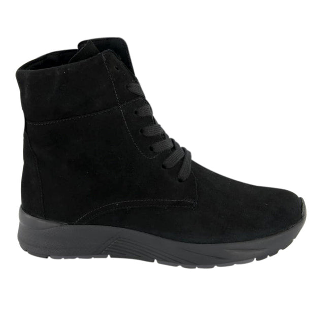 Elegant och lätt damkänga i svart nubuck med både snörning och dragkedja på insidan från Semler med komfortvidd ’H’ för kraftiga fötter.