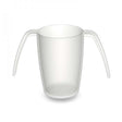 Mugg med 2 öppna handtag i klar PP-plast. Handtagen passar till både små och stora händer och ger ett stadigt grepp.