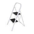 Den här hushållsstegen är tillverkad i vitmålat stål och har två trappsteg med med halksäker beläggning. Det översta steget fungerar även som en sits. Stegen kan fällas ihop och är således lätt att hantera och smidig att förvara.