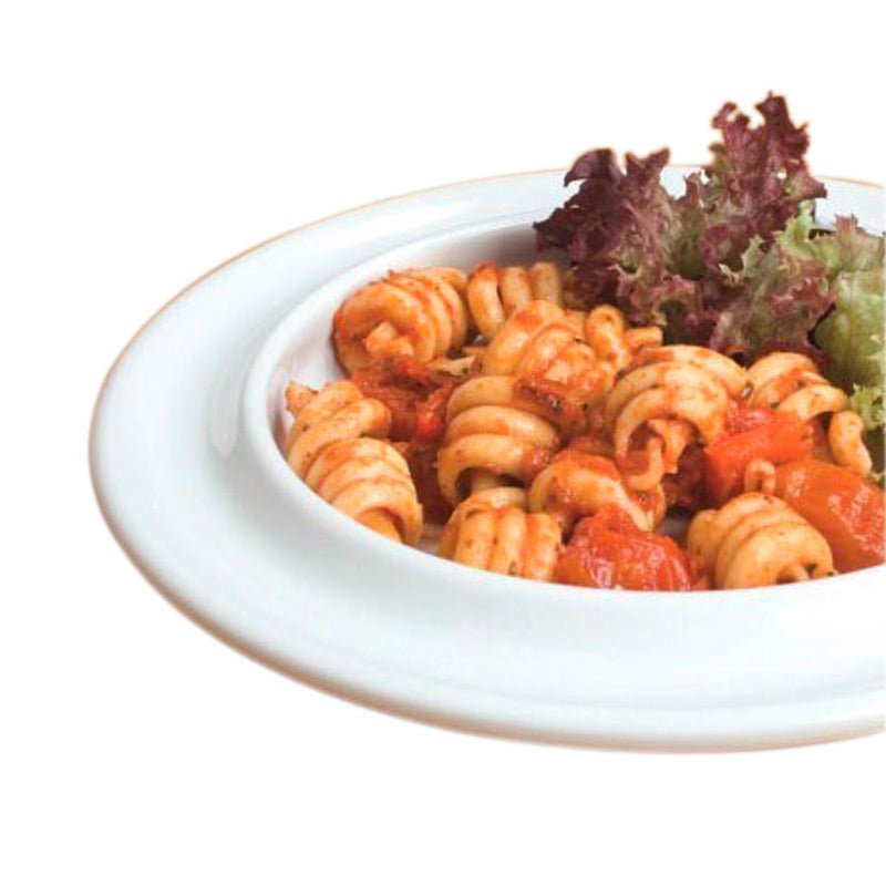 Steelite porslinstallrik med kurvad innerkant gör det lättare att få upp maten på skeden eller gaffeln.