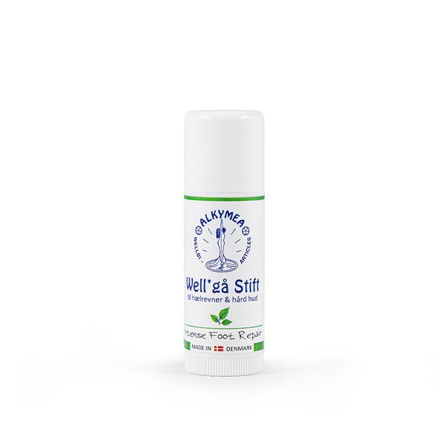Well'gå creme till hälsprickor, hård och torr hud på fötter, armbågar och nagelband. Fast i konsistensen och lätt att applicera. Cremen har en gulaktig färg av kamomill och olivolja med svag doft av örter.