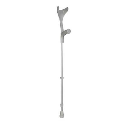 Krycka i aluminium med ett mjukt grepp av termoplastiska elastomer (antibaktriellt behandlade) och underarmsstöd i ellipseformad polyamid. Det går att justera kryckan i höjden, från 76-96 cm, från marken till greppet.