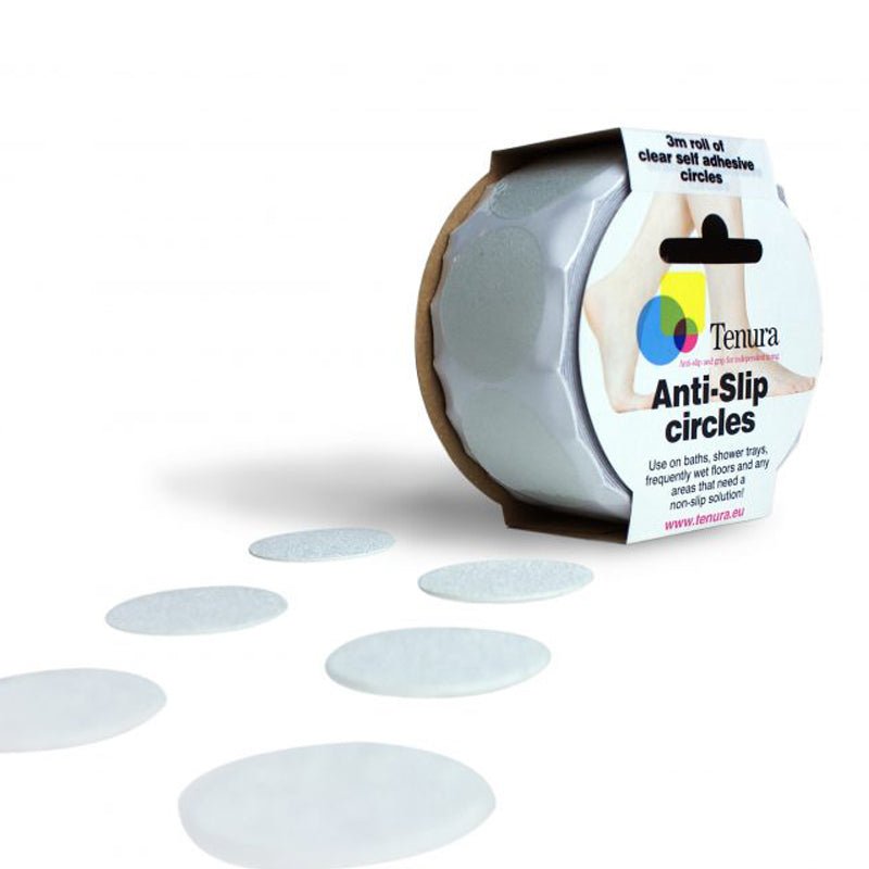 Halkskyddstejp från Tenura som kan anvämdas i dusch och badkar, men även på golvet i köket eller på trappor för att minska risken för fallolyckor. Halkskyddstejpen är enkel att fästa och är ett hygienisk alternativ till vanliga duschmattor.