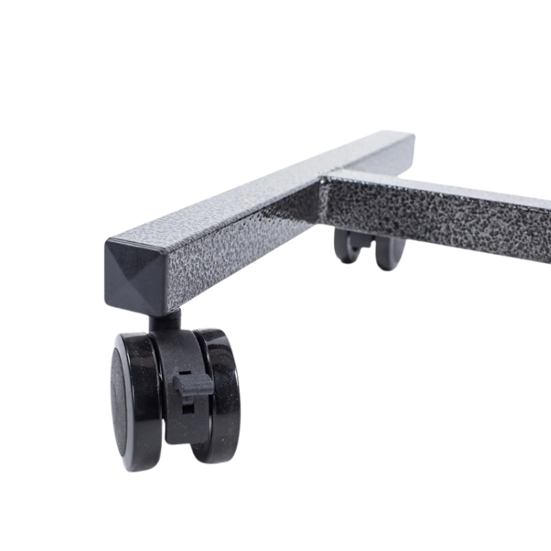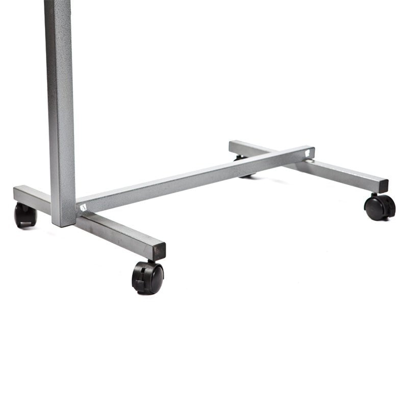 Sängbordet kan justeras i höjden från 76-124 cm. Två av hjulen är låsbara.