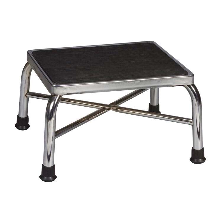Robust pall med räfflad gummibeläggning på steget som gör den halksäker - även när den är våt.
