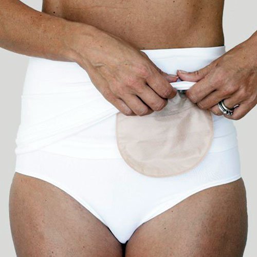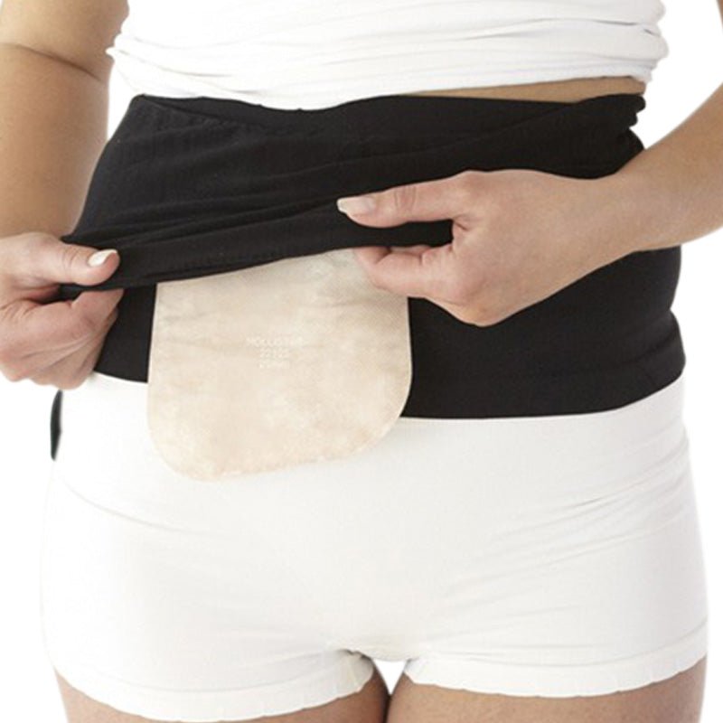 Mjuk fixeringsgördel att använda vid stomi. Gördeln döljer och håller påsen på plats.