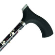 Exklusiv käpp med vackert blommönster och dekorativ silverfärgad ring under handtaget. Käppen kan justeras i höjd och har ett speciellt soft-handtag som säkerställer ett fast grepp. Käppen kan fällas ihop och är lätt att ha med sig i väskan. Höjden på käppen är enkel att ställa in, från 85 cm upp till 95 cm. Den maximala användarvikten är 100 kg.