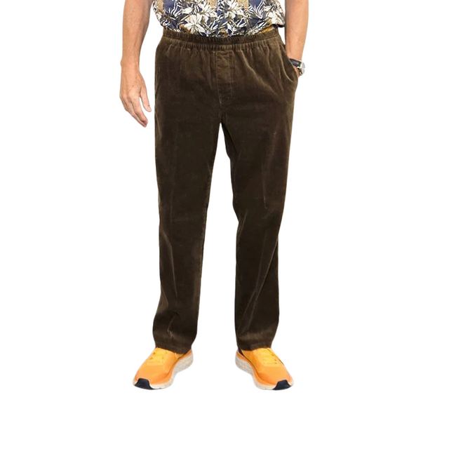 Upplev riktigt mjuka och bekväma byxor med resår i midjan från det välkända tyska märket Brühl. Byxorna är i fin brun manchester med en grönaktig ton och har tre praktiska fickor.