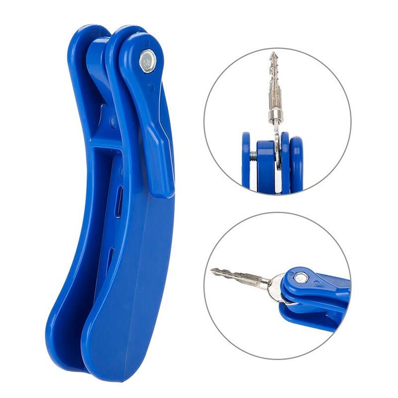 Det blå greppet mäter 12 cm och har ett handtag på sidan som gör det lättare att lossa skruven när nycklarna sitter. Detta kräver minimal styrka och därför kan greppet användas av personer med nedsatt styrka, eller värk i händer och fingrar.