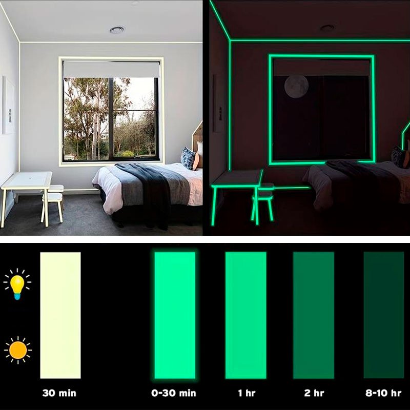 Den här smarta tejpen absorberar ljus under dagen - både naturligt och konstgjort - och avger härefter en lysande effekt i mörker. Efter endast 30 minuter är tejpen "uppladdad" och har en lysande effekt i upp till 10 timmar. Dock lyser tejpen starkast i början för att sedan minska gradvis.