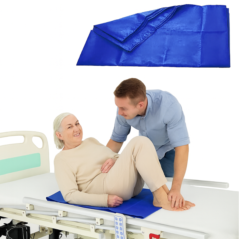 Glidmatta med otroligt låg friktion som ger möjlighet för säker och enkel förflyttning eller vändning av personer i en säng eller stol.