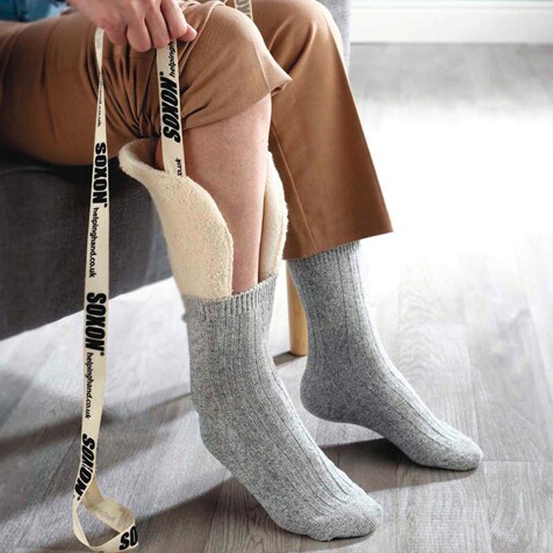 Den här strumppådragaren är utformad så att du lätt får i foten eftersom den bibehåller sin öppna form vid toppen. Den är tillverkad i ett speciellt tyg med invävd bambu, vilket gör den extra skonsam mot känsliga fötter.