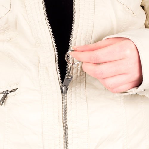 Om du har svårt att få grepp om blixtlåset kan denna metallring vara en bra hjälp. Den fästes i den existerande lilla öglan på blixtlåset. Metallringen gör det lättare att få tag om blixtlåset och få ett stadigare grepp, därmed blir det lättare att öppna och stänga blixtlåsen.