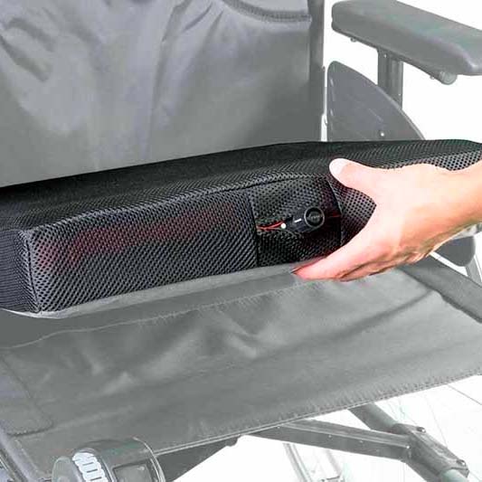 Luftkudden mäter 45x45 cm och passar rullstolar med en bredd från 44 cm.
