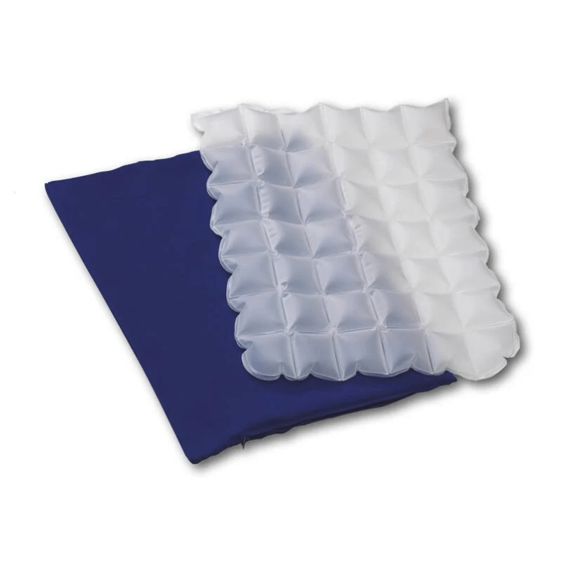 Den här uppblåsbara, tryckavlastande "våffel-dynan" ger mjuk sittkomfort och fördelar trycket.