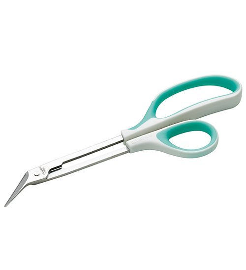 Den hygieniskt rostfria bladen på nagelsaxen har små tänder som griper tag i nageln. Bladen är vinklade så att handleden hålls i en naturlig position vilket gör att du undgår onödig belastning och vridmoment.