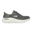 Flexibel och lätt slip-in damsneaker från Skechers i olivfärgad textil med vattentätt membran och Arch Fit-teknologi som ger riktat hålfotsstöd.