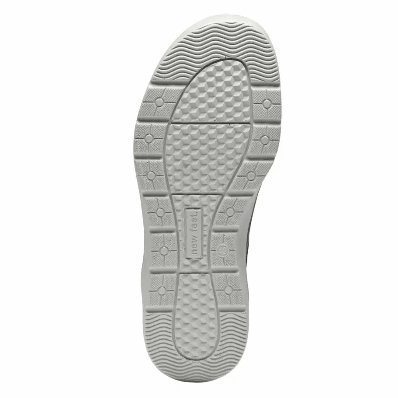 Bekväm New Feet herrsko i klassiskt ljusbrun mocka. Skon har både snörning och dragkedja, vilket gör den enkel att ta av och på samt justera passformen.