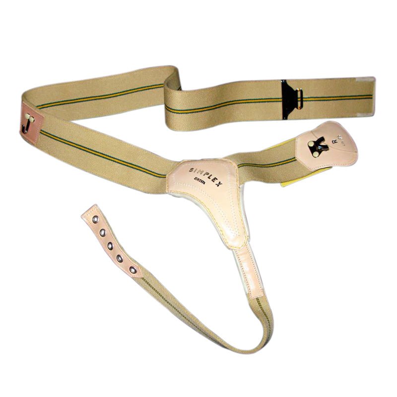 Handsytt, diskret bråckband i mycket hög kvalitet. Bråckbandet har en kudde i mjukt läder som håller in bråcket. Kudden hålls på plats med ett elastiskt band runt höften samt en lårrem. Höftremmen och lårremmen kan justeras i längden och anpassas optimalt efter användaren.