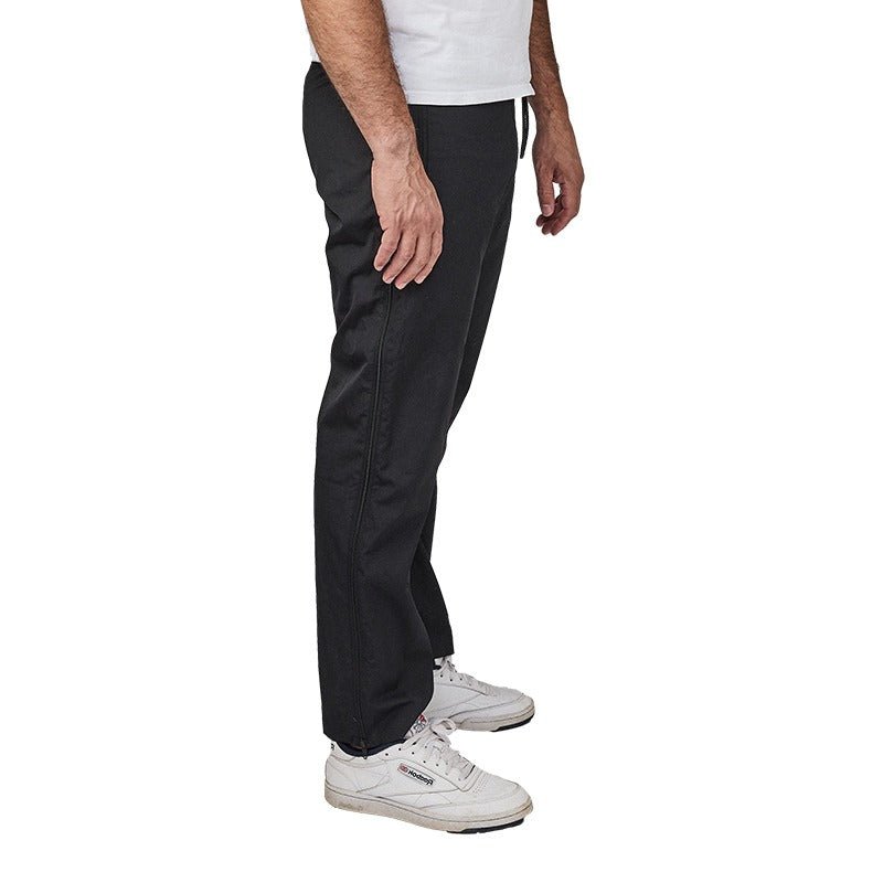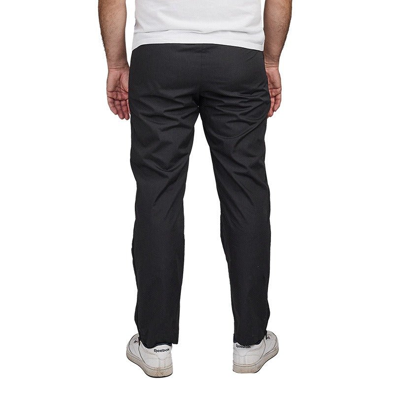 Bekväma och vindtäta svarta byxor med dragkedja i sidorna från Dobsom, designade för att underlätta vardagen för personer med begränsad rörlighet, oavsett om det är tillfälligt eller permanent. Med både resår och dragsko i midjan är det enkelt att justera byxornas passform så att de passar de flesta kroppstyper.