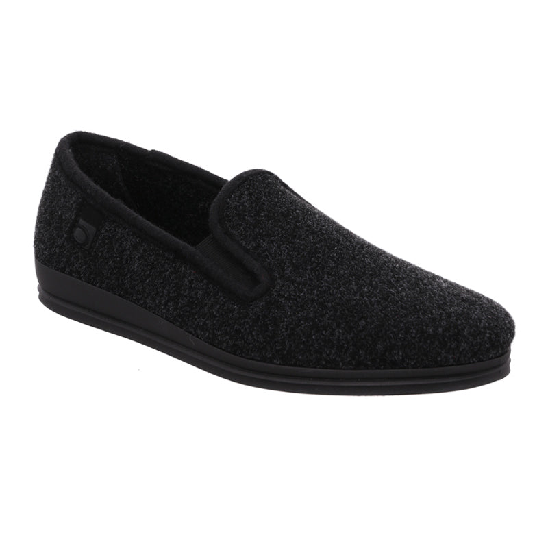 Klassisk toffel från Rohde för herrar i svart ullfilt som håller fötterna varma.