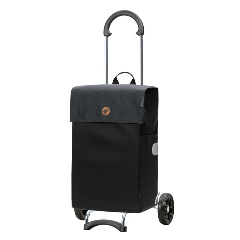 Smart shopper med kardborrelås. Shoppingvagnen har ett stort fack med gott om plats, en liten innerficka samt en utvändig sidoficka. Handtaget kan fällas ner så att den tar mindre plats. Framtill är shoppingvagnen utrustad med ett stöd, så den kan stå själv - även när den är full av varor.
