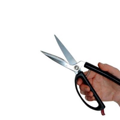 Kökssax med stort och bekvämt grepp. Saxen har en fjäderfunktion som gör att den öppnar sig själv vilket gör det lättare att klippa.