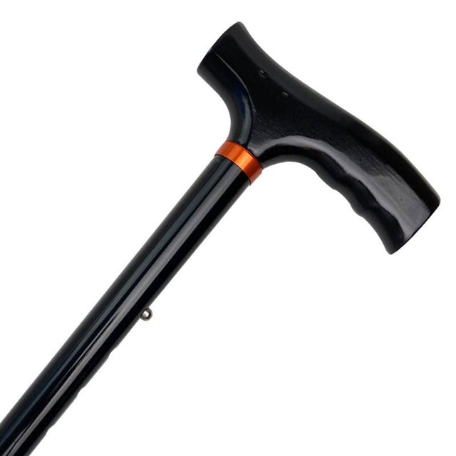 Hopfällbar käpp som kan justeras i höjden från 85-95 cm. Käppen är tillverkad i aluminium och handtaget i plast. Levereras med doppsko på foten.
