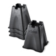 Stabila förhöjningsklossar i svart plast till sängar och andra möbler. Förhöjarna mäter 22 x 22 x 25,5 cm och förhöjer möbeln med 22 cm.