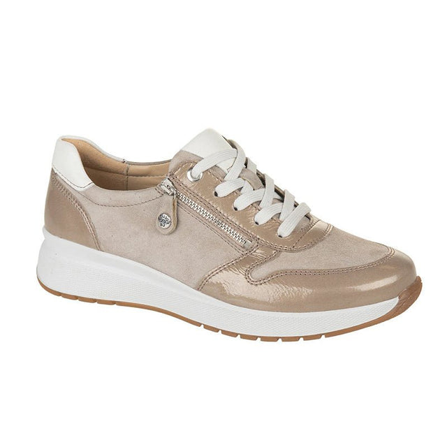 Snygga damskori beige från Fidelio med smarta detaljer som ger ett stabilt stöd till hela foten. Skon har både snören och dragkedja, vilket gör den enkel att justera och att ta på och av.