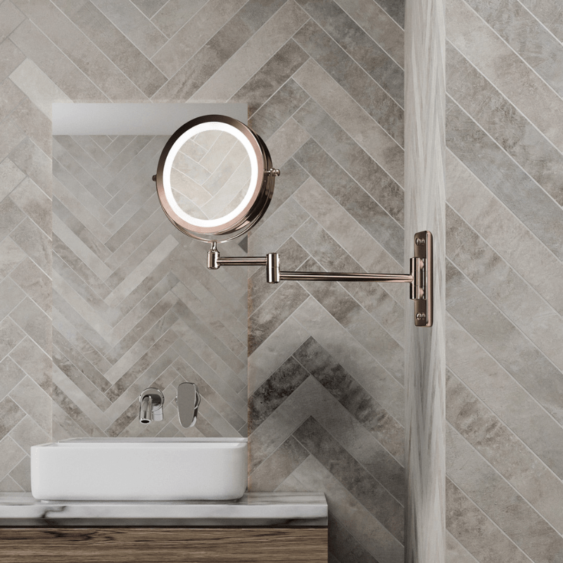 Spegeln är enkel att installera och kan dras ut upp till 31 cm från väggen och vinklas 360°, vilket gör den både funktionell och praktisk.
