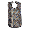 Praktisk haklapp till vuxna med brun/blått paisleymönster och nicklelfria tryckknappar. Haklappen är mjuk och behagligt med 100% vätsketätt laminering. Sköljs av under rinnande vatten eller tvättas i maskin i upp till 60°C.
