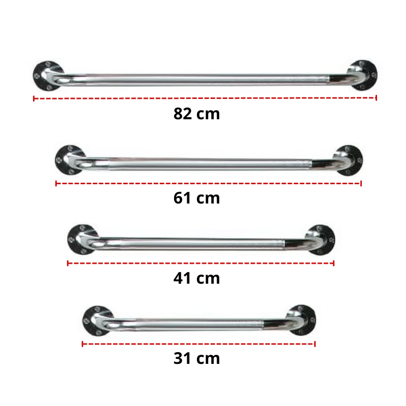 Längd: 31, 41, 61 eller 82 cm (själva handtaget är 4 cm kortare, yttermått inkl. monteringsplatta är +6 cm)