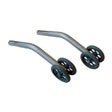 Anti-tip-hjul till Dolphin rullstol (artikelnummer 213100). Dessa hjul förhindrar att användaren tippar bakåt i rullstolen. Anti-slip-beslagen är tillverkade av aluminium och är mycket enkla att montera.