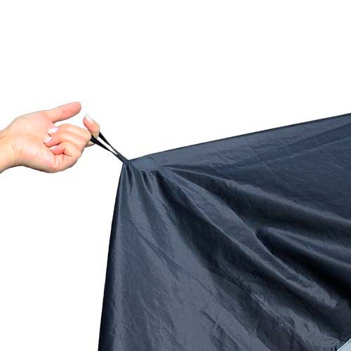 Regnskydd för rullator som fungerar som ett vattenavvisande skydd med yttre genomskinlig ficka och viktband. Viktbandet är placerat längs nederkanten av regnskyddet, så att det sitter kvar och inte blåser bort i blåsigt väder.