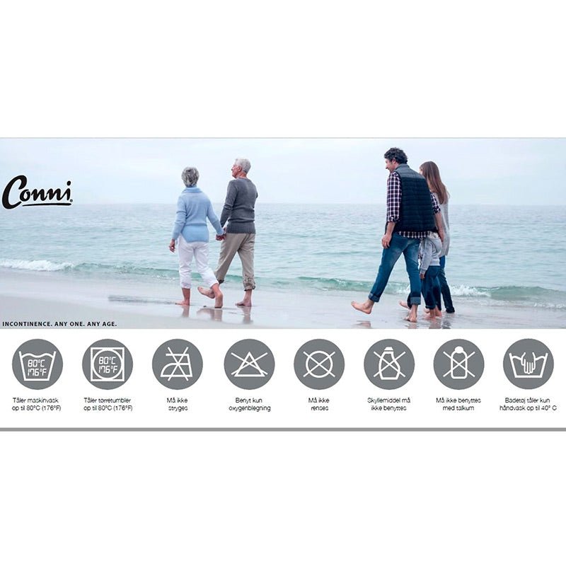 De diskreta kalsongerna ser ut som vanliga kalsonger och med det lättviktiga tyget är de behagliga och torra att ha på. De kan återanvändas och är därför ett klimatvänligt och prisvänligt val av inkontinensskydd.