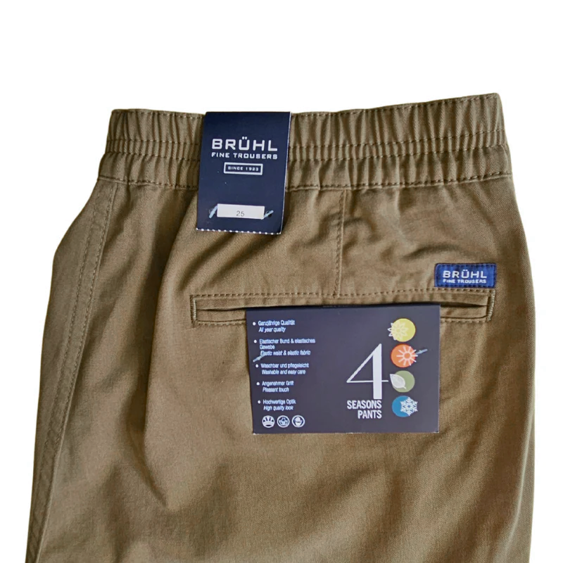 Byxorna från Brühl är certifierade med OEKO-TEX® STANDARD 100, vilket innebär att de är fria från skadliga ämnen och skonsamma mot huden.