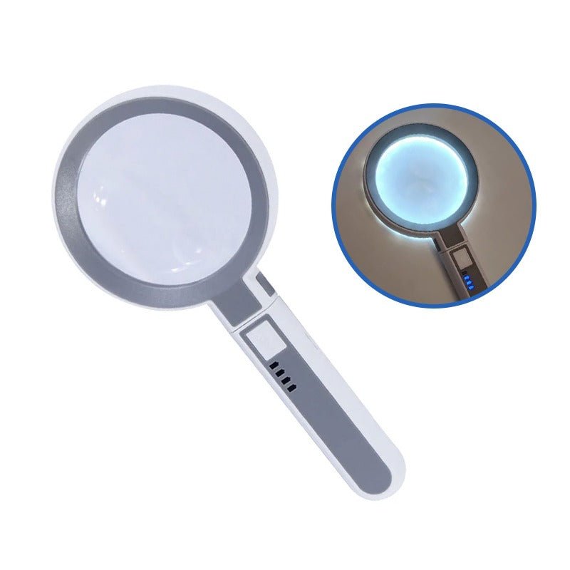 Förstoringsglaset har 4x förstoring och kraftiga LED-lysdioder, som med ett enkelt tryck kan ställas in i tre olika styrkor. Med ett inbyggt uppladdningsbart batteri laddas luppen enkelt upp med USBC-kabeln.