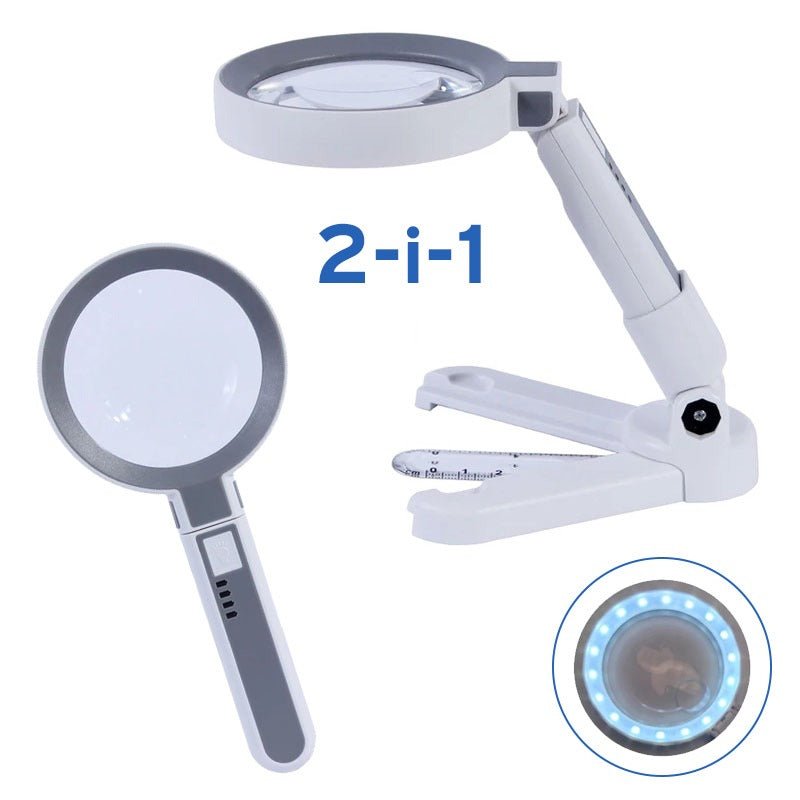 Med det här smarta förstoringsglaset får du både en liten bordslupp och ett lätt förstoringsglas som du kan hålla i handen.