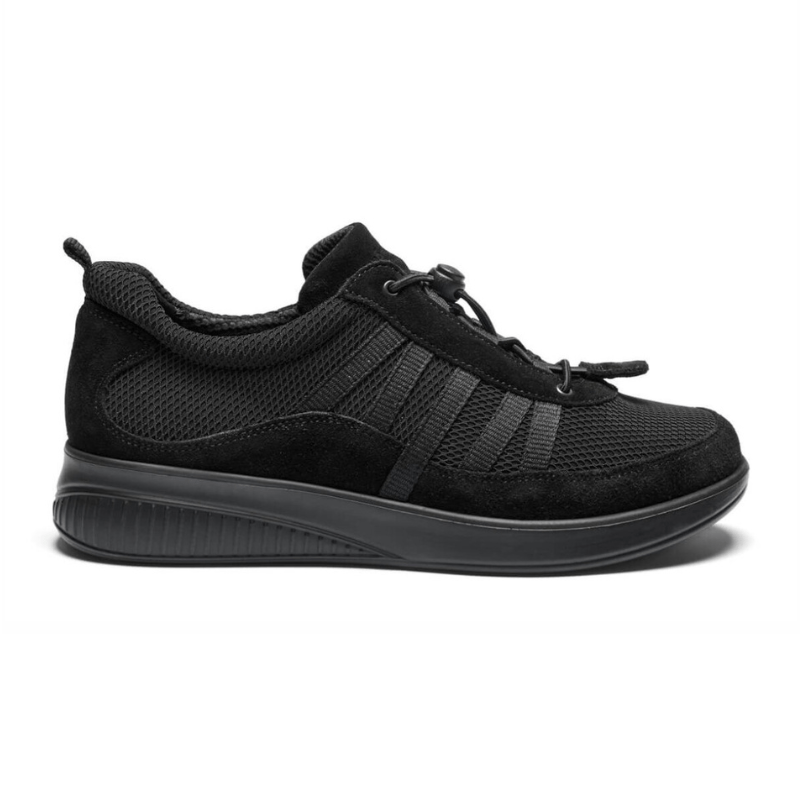 New Feet damsneaker i svart med ovandel i mesh, som ger ett sportigt uttryck och god andningsförmåga.