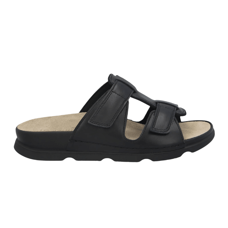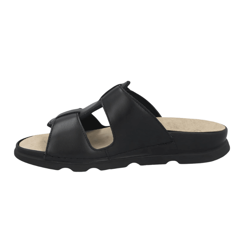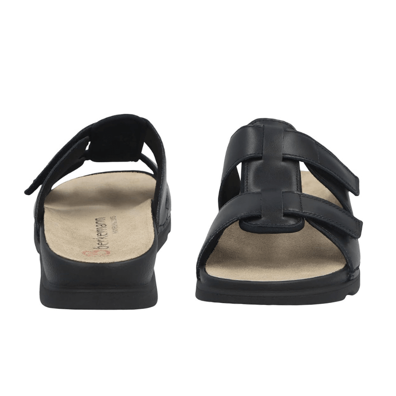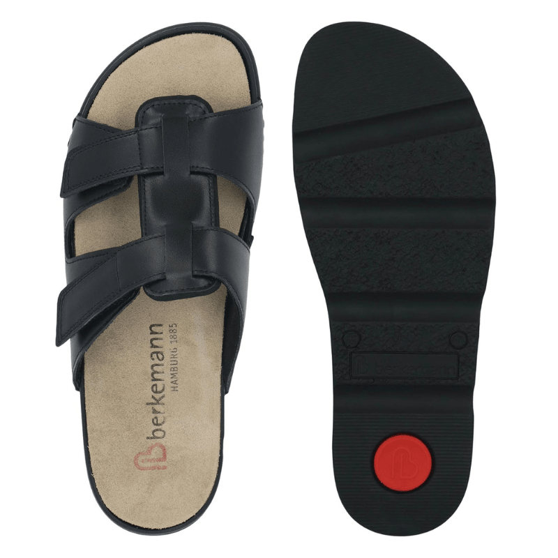 Lätt och luftig damsandal från Berkemann i svart läder med en enkel och stilren design.