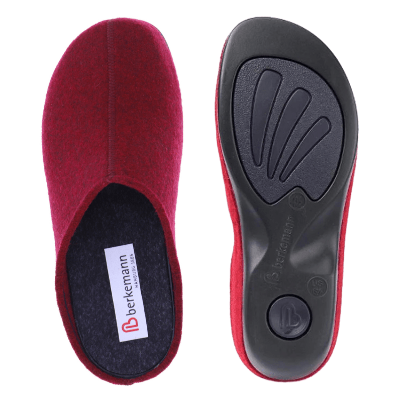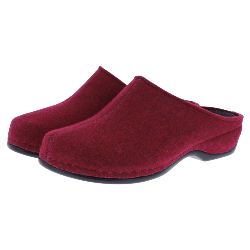 Behagelig hjemmesko fra Berkemann i mørkerød filt, der giver varme og komfort på kolde dage. Det bløde filtmateriale former sig efter foden og sikrer en let og fleksibel pasform.