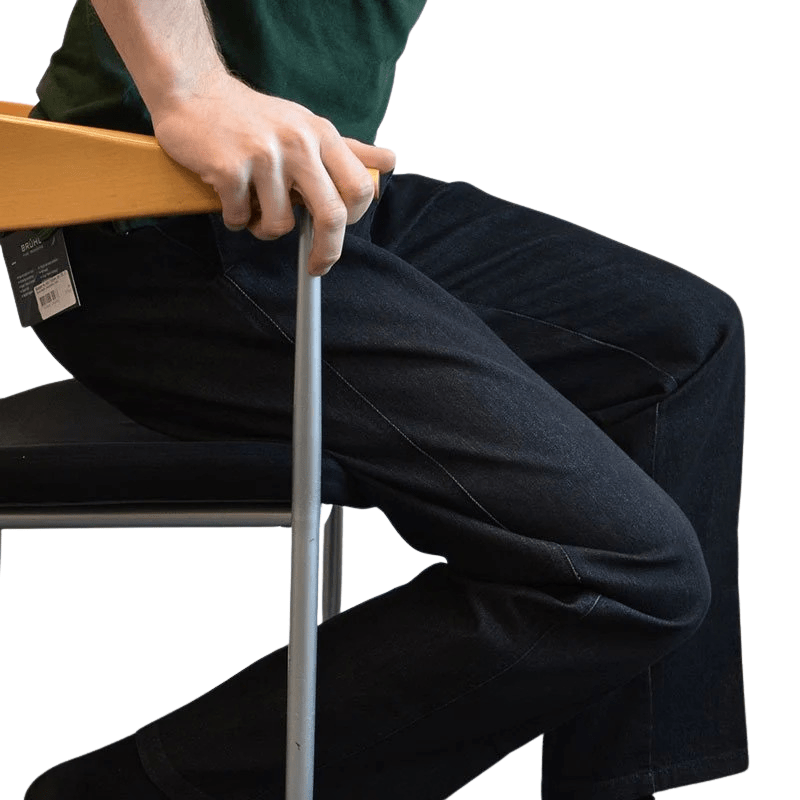 Den högre grenlängden baktill gör också att byxorna är bekväma när man sitter ned, vilket är en viktig faktor när man använder rullstol.