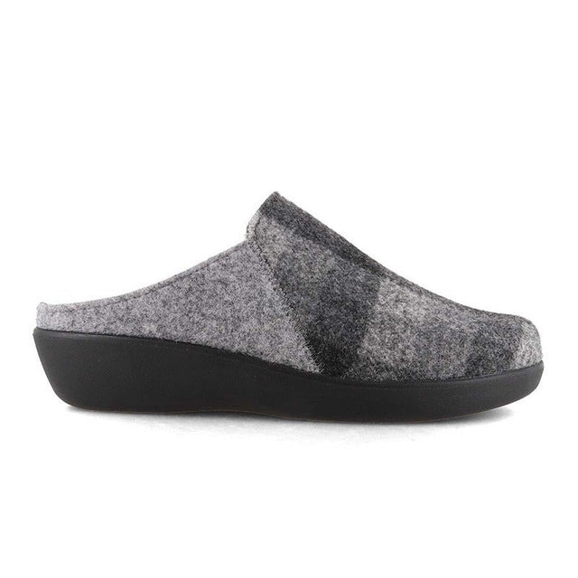 Snygg rutig toffel från Berkemann i naturlig filt med tillsatta syntetiska fibrer för extra hållbarhet. Den naturliga andningsförmågan i filten, i kombination med det mjuka fleece-fodret, säkerställer ett behagligt fotklimat och optimal värmeisolering.