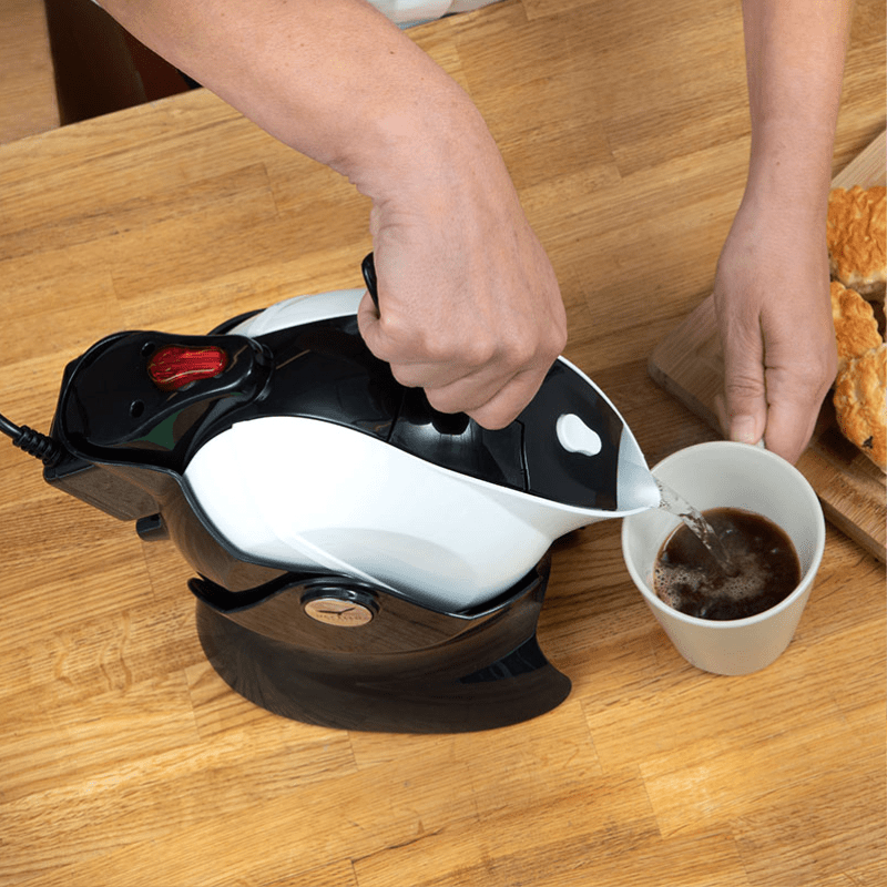 Hållarens undersida är utrustad med halkfria fötter, så säkerheten är i toppklass och du undviker olyckor när du häller. Dessutom är vattenkokaren tyst och har automatiskt överhettningsskydd.