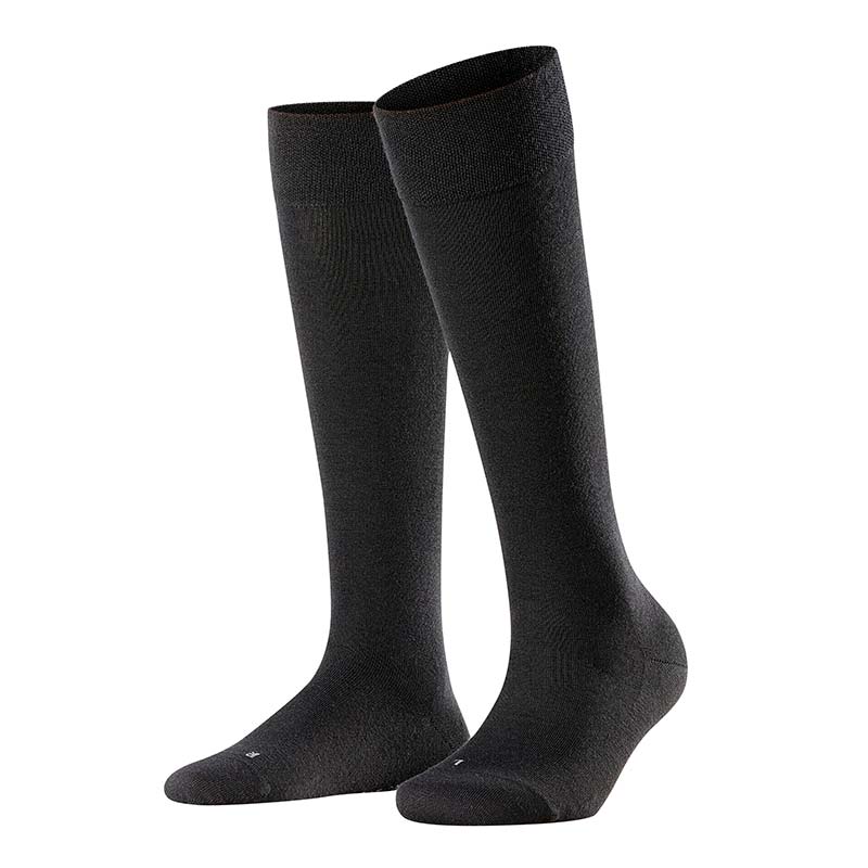 Klassisk svart knästrumpa med bekväm insida av bomull och varm, klimatreglerande merinoull på utsidan. Strumpan är anatomiskt formad efter höger och vänster fot för optimal passform.