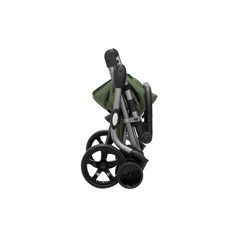 Vagnen kan fällas ihop så att den tar minimalt med plats, och väskan kan enkelt tas av från stommen.