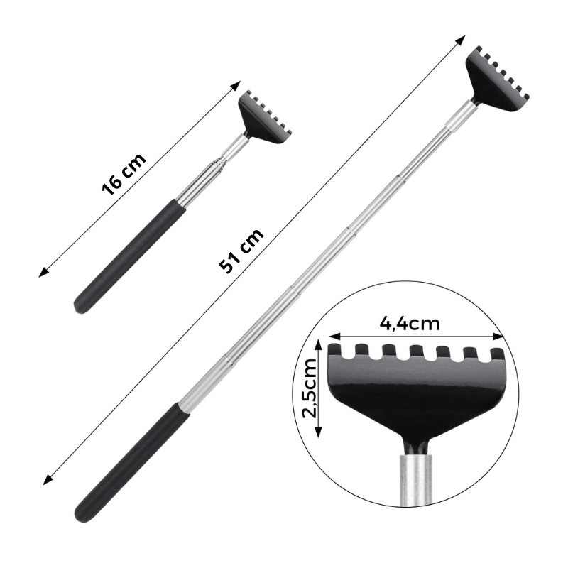 Den här praktiska ryggkliaren med teleskopstång är perfekt för att lindra klåda på svåråtkomliga områden som ryggen. Ryggkliaren kan justeras i längd från 16 till 51 cm, vilket gör den mycket kompakt efter användning och lätt att ta med i väskan. Perfekt för personlig användning eller som present.